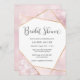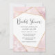 Lovely Bridal Shower invitation with geometric marble pattern in pink and gold with a pink backgorund.