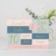 The simple and minimalist save the date design is modern and unique using geometric blocks for text arrangement in mosaic style. It is perfect for summarising the most important details of the upcoming wedding. Text is to be personalised on the front, and on the back, the placeholder image also needs to be replaced with a photo of the bride and groom or any other image based on your preference.