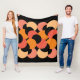 Big geometric pink, orange, yellow and beige shapes on a black background making a modern fleece blanket with a trendy abstract design.