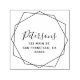 Self-inking stamp features a geometric centerpiece with modern calligraphy for your family name.