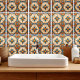 Bring a touch of global elegance to your space with this stunning geometric pattern in shades of teal blue, golden orange and white, inspired by traditional Moroccan and Mediterranean tiles. The intricate ceramic tile design showcases symmetrical shapes and ornate details with an Egyptian flare, evoking the rich history and artistic craftsmanship of these regions. Whether used in home decor, party supplies, or personalised gifts, this pattern adds a sophisticated, worldly charm. The design is part of an exclusive collection, perfect for anyone looking to infuse their home or events with timeless beauty. Search ID1077 to see other products in this unique design set. Note: design adapted from generative content.