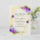 A elegant geometric design with blue, purple, and fuchsia pansies. This save the date is part of a complete wedding invitations set.