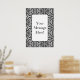 This is a beautiful intricate repeating geometric almost floral pattern for adults to colour. It has a empty plain rectangular area framed or bordered by the design, where you can add your own words.