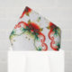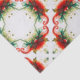 Large print Geometric pattern holly berries and flowing red and green ribbons,