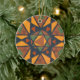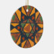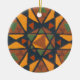 A round ornament with a traditional Islamic star pattern in black, gold, brown and green, from a screenprint by Judy Adamson.