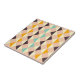 Geometric pattern with overlapping diamonds and triangles in orange, teal, cream, brown, and pink. The design is symmetrical, creating a vibrant, playful feel.