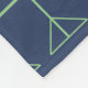 Trendy geometric pattern fleece blanket. Peach and green print on dark blue background.