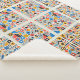 Vibrant geometric patterns fill the entire space, featuring circles, squares, and lines in a harmonious mosaic.