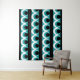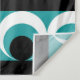 Geometric pattern illustration with stripes, circles and round shapes in turquoise, black and white colours