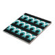 Geometric pattern illustration with stripes, circles and round shapes in turquoise, black and white colours