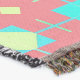 Vividly coloured geometric shapes arranged in a repetitive pattern, combining artistic abstraction with symmetry, ideal for backgrounds, textiles, and creative design projects emphasizing modern aesthetic and bold use of shapes and colours.