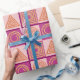 Wonderful gift paper with geometric shapes on a colored background. In the trendy colors Rose Violet, Nosegay, Samoan Sun and Orange Tiger.