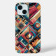 Elevate your style with the geometric patterns phone case. featuring a vibrant array of angular patterns in blue, red and beige, this case offers both aesthetic appeal and functional protection.
