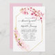 Pink watercolor spring blossom long distance baby shower by mail invitation featuring sakura blossom with gold geometric frame.