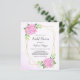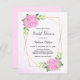 These bridal shower invitations feature a watercolor floral design with pink hydrangea flowers, leaves and a faux gold geometric frame. Matching bridal shower supplies also available.