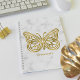 Modern and trendy white marble and printed gold foil geometric butterfly personalised design.