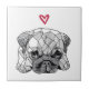 Geometric pug baby puppy dog whit red hear above head, sweet baby