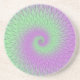Make a bold statement with this striking geometric spiral design. Featuring layered, radiating spikes that draw the eye inward, the artwork blends soft gradients of purple and mint green against a dramatic black background. The result is a mesmerising, almost hypnotic effect that feels both modern and dynamic.