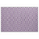 Stylish fabric features a bold, geometric, regal purple and white meander pattern. The original ornamental design has violet diamonds with white borders that are surrounded by royal purple meanders angling around them. White zigzags separate the winding purple paths and offset diamonds.