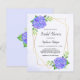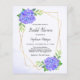 These bridal shower invitations feature a watercolor floral design with purple hydrangea flowers, leaves and a faux gold geometric frame. Matching bridal shower supplies also available.