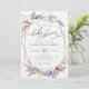 Geometric Faux Gold and Lavender Greenery Baby Shower Invitation. Whimsical pinkish and purple watercolors and modern typography complement the design. Personalise this Baby Shower Invitation with your baby shower details easily and quickly, press the customise it button to further re-arrange, and format the style and placement of the text.