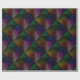 Abstract rainbow geometric square design on black background.