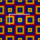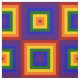 Create some cool kids' decor, celebrate LGBTQ Pride, or show your love of the spectrum with alternating geometric rainbows material. Festive modern fabric features a series of red, orange, yellow, green, blue, indigo, and violet squares that radiate out from the centre in this colourful design. The square sequences next to it are rainbow squares with the colours sequenced in reverse order.