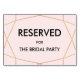 Wedding reserved table sign in geometric rose gold design pattern.
