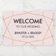 Wedding welcome sparkling wine label in geometric rose gold design pattern.
