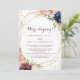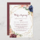 This geometric rustic gold glitter elopement reception card is perfect for a modern post elopement party. The design features hand-drawn watercolor purple, navy, blush, burgundy, navy flowers, green and gold leaves glitter adorning an elegant geometric frame.