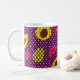 Coffee mug with colourful geometric shapes and dots