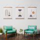 Pastel tones and modern geometric shapes in three different compositions—trendy contemporary design.