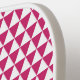This modern pickleball paddle design features a pink and white geometric triangle pattern, with your initial in bold pink text in a white triangle for a look that is simple and stylish, yet professional.