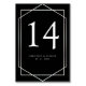 Simple and elegant faux shimmering silver foil geometric design against a changeable black background colour with white table number and bride and groom's names and wedding date duplicated on both sides. COLOR CHANGE: Click on the CUSTOMIZE tab to easily select a background colour to coordinate with your wedding colour scheme. Contact the designer if you'd like this design modified or on another product to complement your wedding suite or reception decor and supplies.