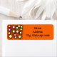 These return address labels have a geometric design of circles of different colours with lines coming out.