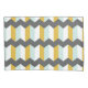 Moden geometric pattern with mint green, mustard yellow, white and grey stripes.