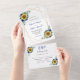 Geometric Sunflower Blue Rose Modern Wedding All In One Invitation