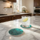 Geometric Teal and Gold Sandstone Coaster