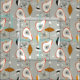 This mid-century modern pattern features teal geometric shapes.