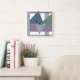 Geometric Triangle Pattern Blue Violet Green Square Wall Clock