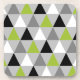 Modern geometric triangle pattern in light and medium grey, lime green, black, and white.