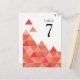 If you like being different, you'll love this bold and modern table card that features an abstract diamond/triangle geometric pattern in shades of coral, peach and salmon. Available in 8 fab colours: fuschia, coral, lilac, mint, teal, pink, periwinkle and yellow. Click the CUSTOMIZE IT button to personalise with your own text. SEE THE ENTIRE COLLECTION AT: glamprettyweddings.com. For questions or custom requests, email: cheryl@cheryldanielsart.com. "Geometric Triangles" original design by Cheryl Daniels © 2014.
