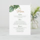 Tropical Watercolor Green Palm Leaves Art Wedding Menu Card. Eat, drink, and be merry! Elevate your dining space and tablescape with a thoughtful menu that is sure to delight