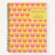 Personalised recipe notebook with a cute geometric tulip flower pattern in yellow and pink.