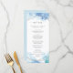 This geometric watercolor silver dinner menu card is perfect for a modern wedding. The design features soft sky blue and teal watercolor overlaid with geometric shapes in gorgeous faux silver glitter. This menu can be used for a wedding reception, rehearsal dinner, or any event.