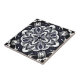 Ceramic tile in a four way watercolor effect geometric star pattern in dark graphite grey and white, accented with black