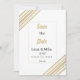 Sleek and modern, these geometric minimalist wedding Save the Date invitations showcase crisp white and gold with black typography on a clean, neutral backdrop. Designed for the contemporary couple, they blend simplicity with elegance. The refined design lets your love story shine. Fully customizable to match your wedding vision.