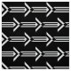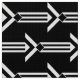 Stylish fabric features a bold white geometric pattern on black. Three alternating white and black chevrons end at a black diamond outlined with white. Three white stripes extend from the base of the diamond until the pattern repeats giving it the look of arrows. Black separates the lines of arrows.