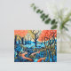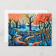 Geometric Wilderness in Linocut Winter Holiday Postcard