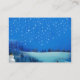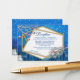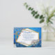 A Blue winter fantasy scene with a Geometric gold frame is easy to customise with your wording, font, font colour, paper shape and choice of twelve paper types. for a winter wedding stationary theme